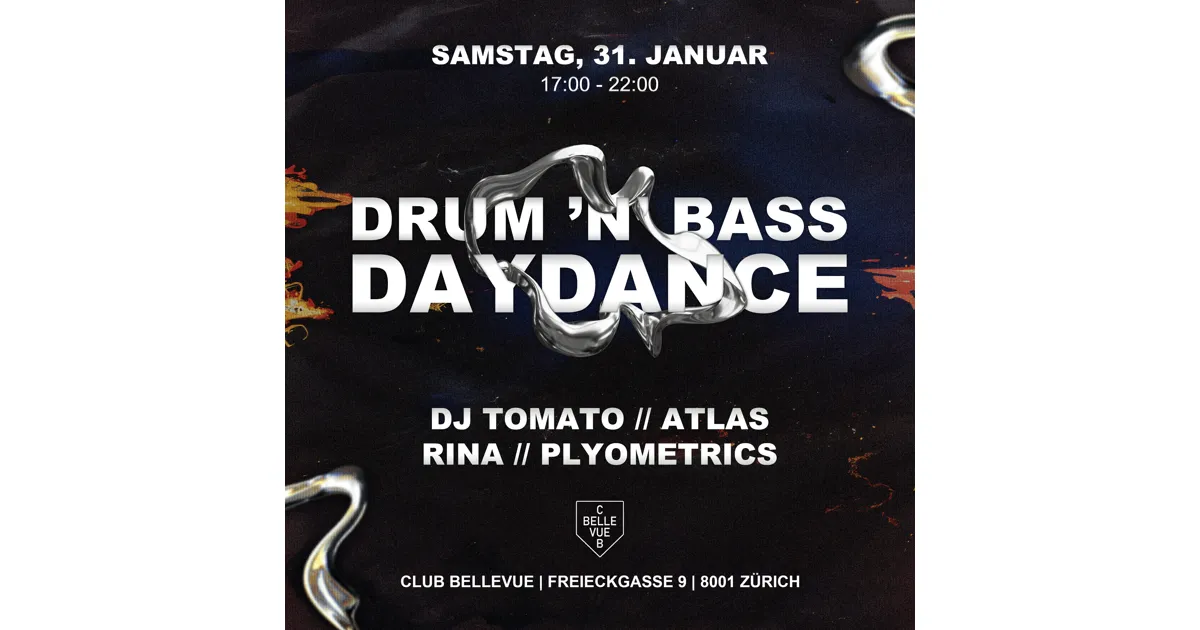 Drum ’n Bass Daydance brings the energy of the night into the daylight. On Saturday, January 31 from 17:00 to 22:00, Club Bellevue in Zurich hosts a daytime session dedicated to rolling basslines, fast rhythms and uplifting vibes.