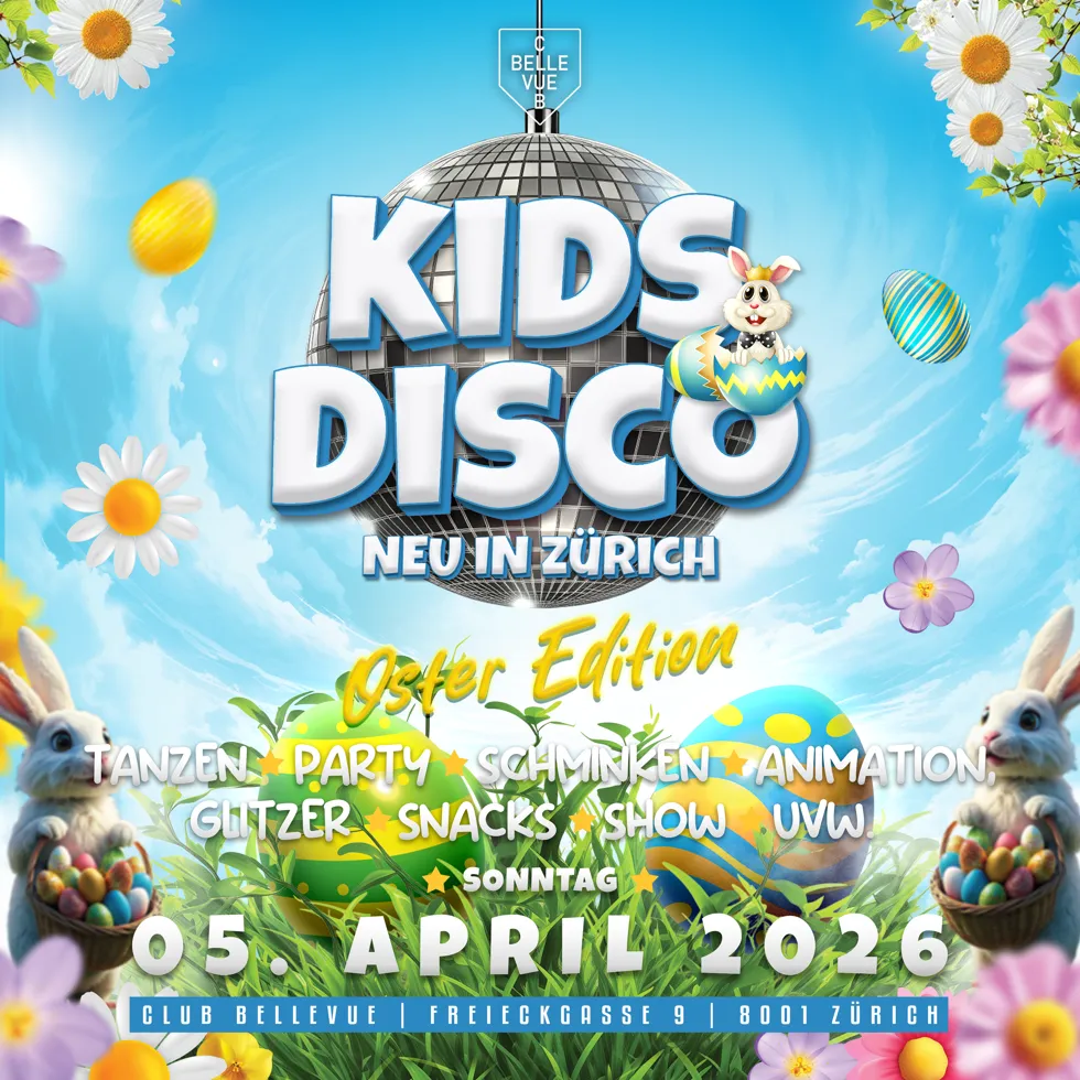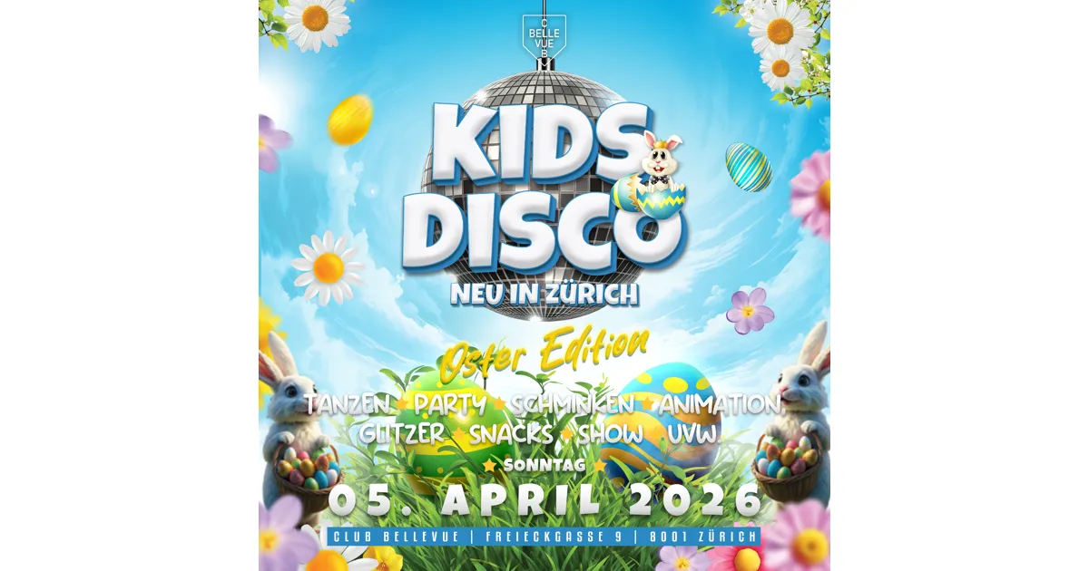Am Sonntag, 05. April, wird der Club Bellevue von 14 bis 18 Uhr zur OSTER Edition – der coolsten Kinderdisco der Stadt! 🎉✨
