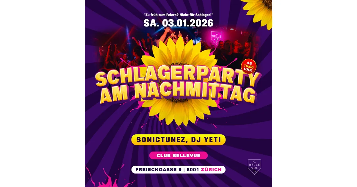 Im Club Bellevue beginnt das neue Jahr nicht leise, sondern mit einem Augenzwinkern und einer Portion überschäumender Lebensfreude. Am Samstag, 3. Januar 2026, öffnen wir bereits ab 16.00 Uhr die Türen für ein Format, das die frühen Stunden mit Bühnenlicht füllt: die Schlager & Ballermannparty am Nachmittag.