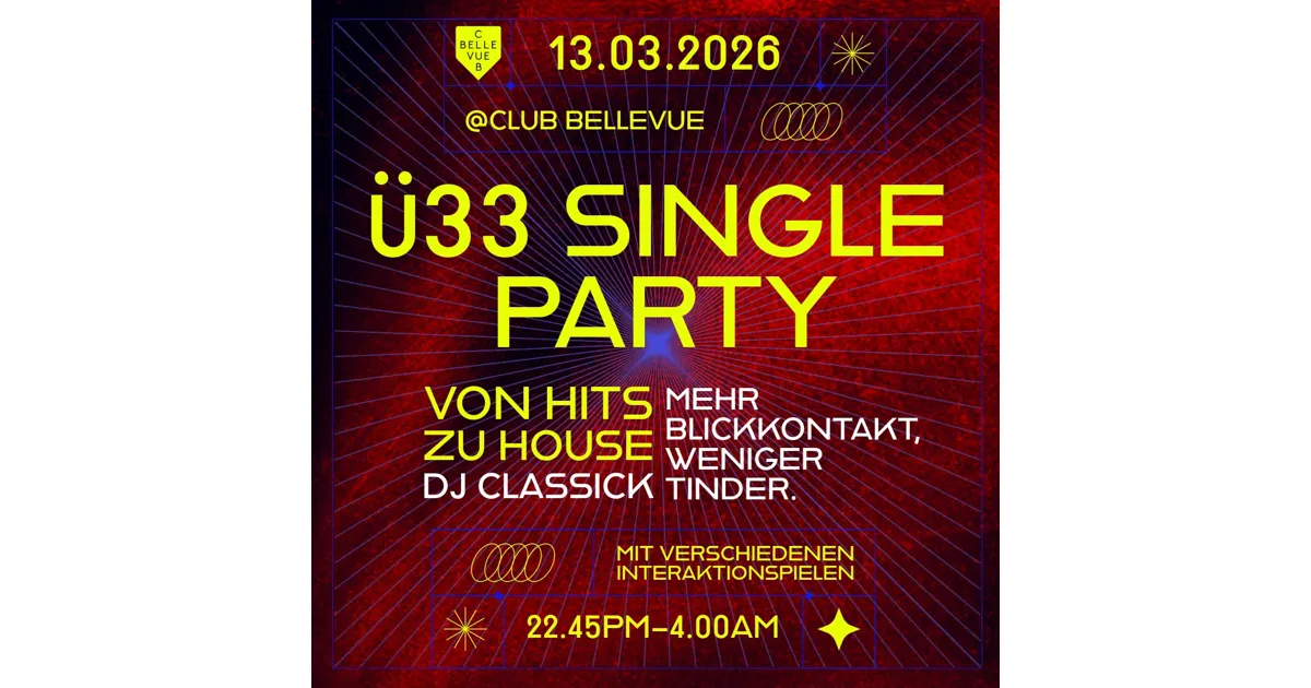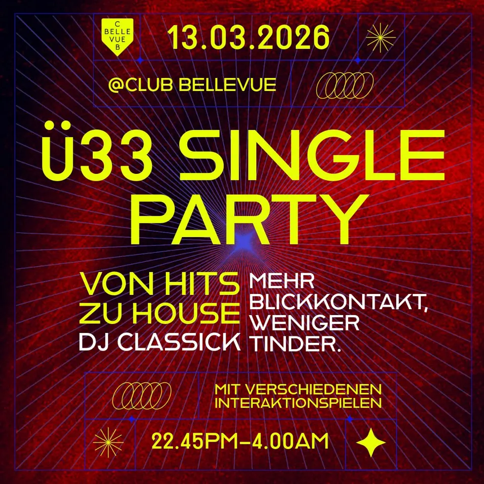 Ü33 ist kein Neuanfang. Es ist der Moment, in dem man weiss, was sich gut anfühlt – und was man sich sparen kann. Ein Abend für Singles ab 33 (plus minus, wir verstehen uns) die gerne ausgehen.